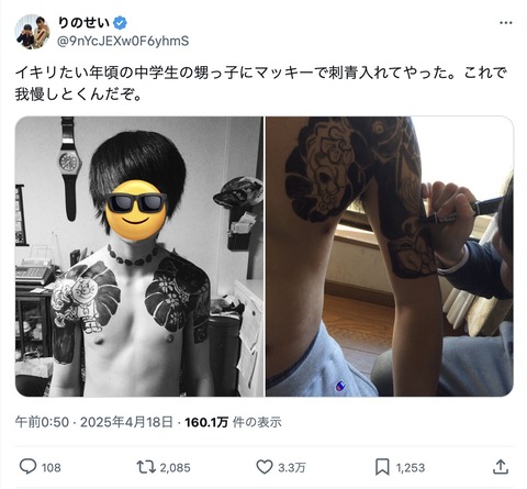 【悲報】イキリたい年頃の中学生、和彫を入れて人生終了・・・