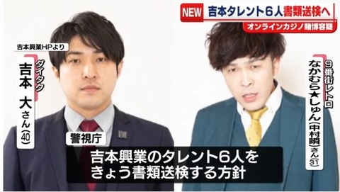 【悲報】吉本芸人さん6人、オンラインカジノで書類送検が決定WWWWWWWWWWWWWWWWWW