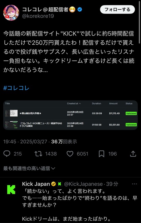 【衝撃】コレコレ、KICKで5時間配信しただけで250万稼ぐwwwwwww
