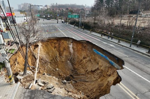 【国際】韓国でも道路が陥没してしまう、ソウルの道路陥没 転落のバイク運転手、心肺停止状態で発見