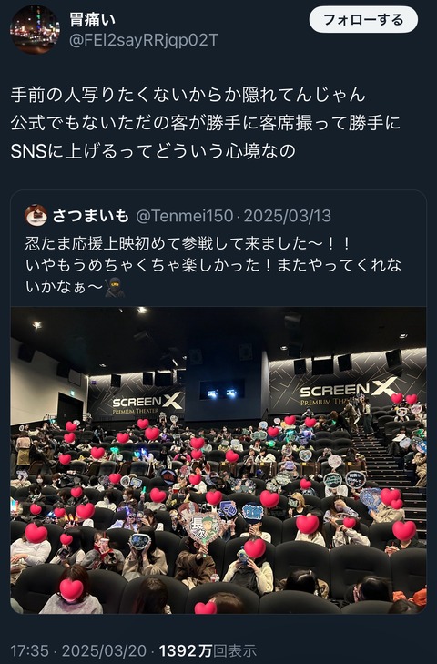 【画像】忍たま腐女子、映画館で暴れてしまう