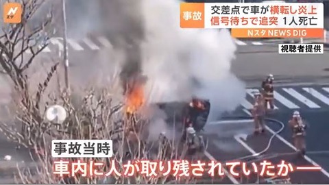 【悲報】東京八王子で50代女性が運転する普通乗用車が軽自動車に追突。軽自動車の中の人は生きたまま焼け死ぬ