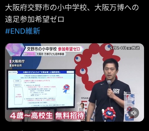 大阪「万博に子供は無料で招待♥」→参加希望ゼロwww