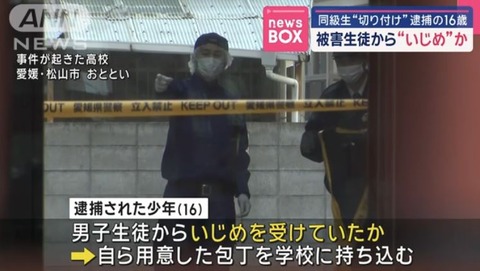 【愛媛】いじめ被害者男子(16)、加害者男子の首を包丁で切り裂く