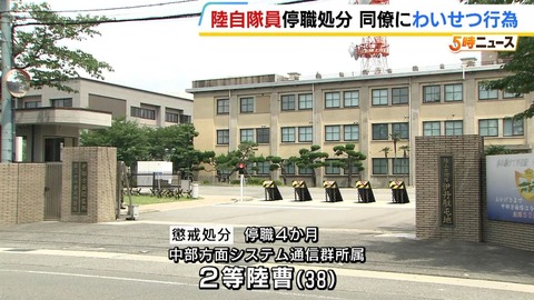 【悲報】陸自衛隊員(38)がむらむらして同僚にキスして懲戒免職、所属していた伊丹駐屯地「LGBTQなどへの配慮から隊員の性別は言えない」