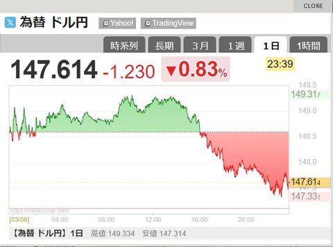 【朗報】ドル円、ひっそりともうすぐ1ドル146円台