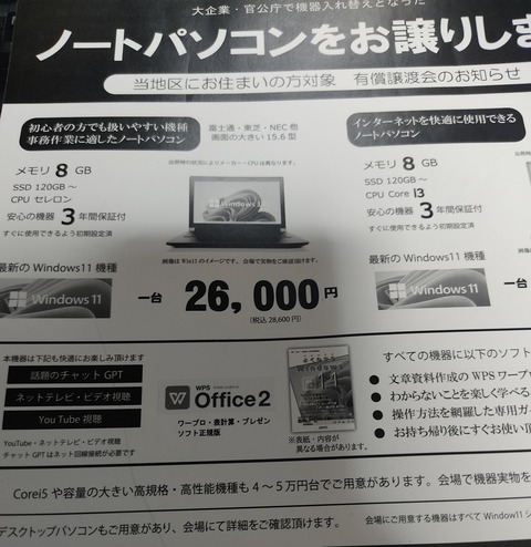 【画像】パソコンの譲渡会、かなり安いと思うが、どう見る?