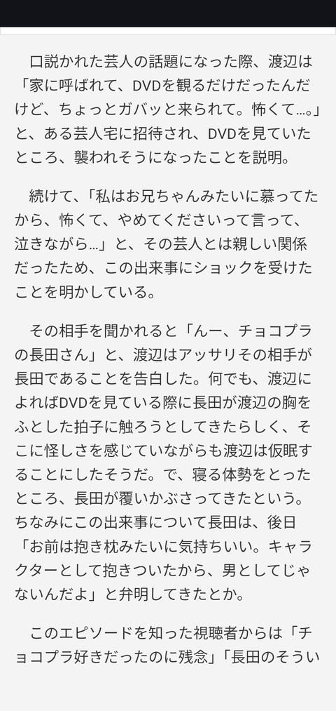 渡辺直美さん、チョコプラ長田に口説かれた過去を告白