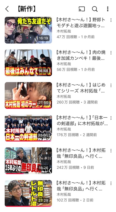 【画像】キムタクのYouTube、開設から一年が過ぎた現在の再生数