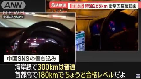 【動画】中国人富裕層さん、時速265㎞で首都高の湾岸線を爆走し、SNSで自慢してしまう「湾岸線で300㎞は普通、首都高なら180㎞でちょうど合格レベルだよ」