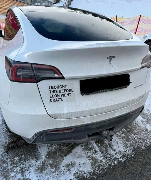 【悲報】テスラ車のオーナー、揃いも揃って馬鹿みたいなシールを貼ってしまう