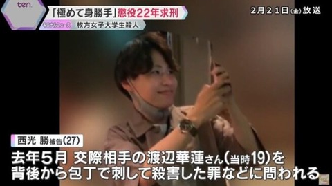 【速報】交際相手の女子大生を殺したあと彼女の金で豪遊した無職の西光勝被告(27)、求刑通りの懲役22年