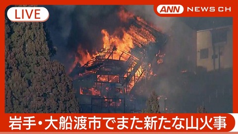 【悲報】岩手大船渡の山火事、少なくとも84棟の住宅に延焼