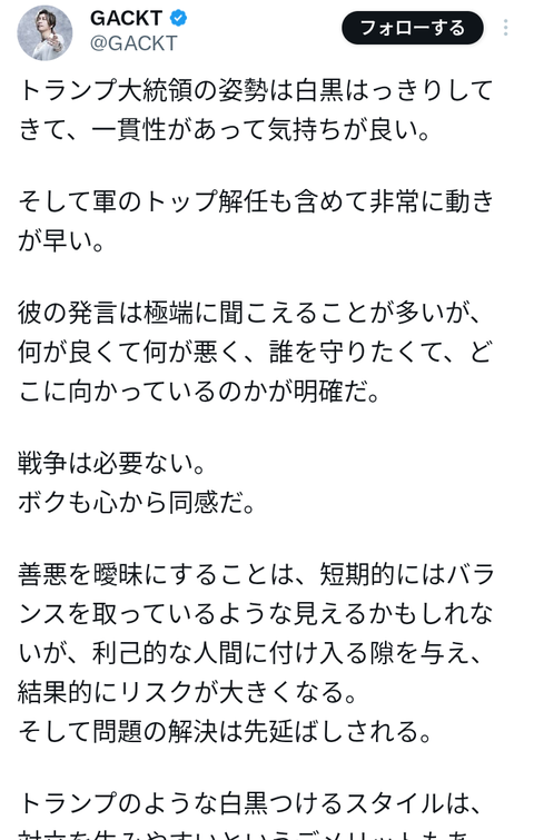 ガクト「日本人はトランプを見習え」アメリカ人「トランプはお前みたいなカマホモアジア人が嫌いだぞ」