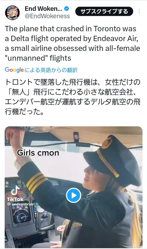 トロントで起きた航空機事故、女ばかり採用するDEI航空会社だった