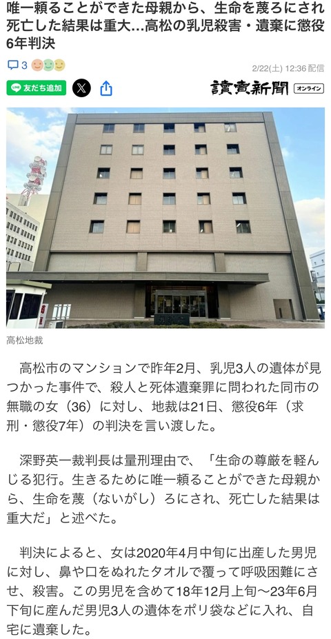 【高松乳児殺害遺棄事件】?⚖「子供を3人殺してポリ袋に入れて遺棄ですか……え、女性!?」
