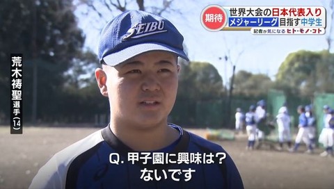 【悲報】中学野球日本代表「甲子園に興味はない。アメリカの高校に行く。」