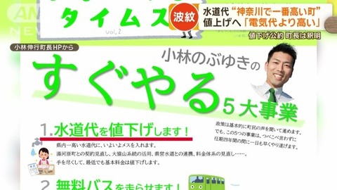 【悲報】神奈川県1高い水道代を値下げの公約で当選の真鶴町の小林伸行町長、水道代値上げを実現