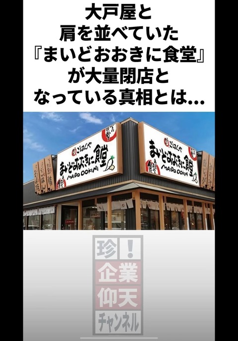 【悲報】大阪「まいどおおきに食堂」が大量閉店