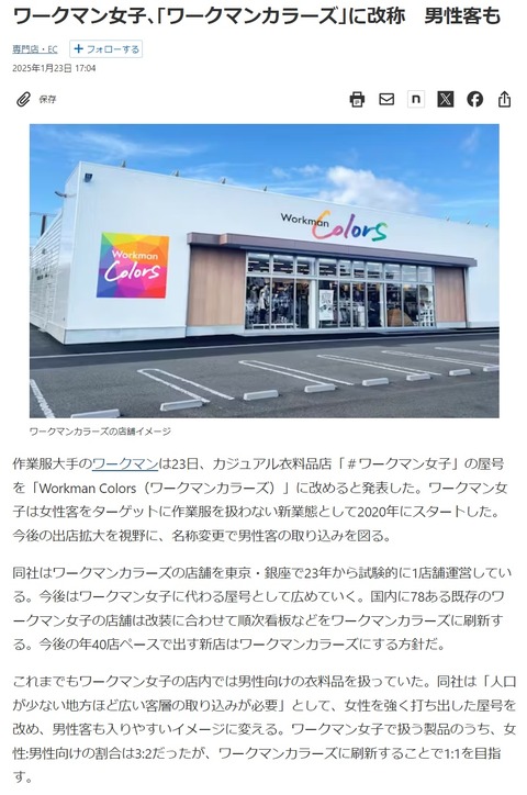 【間に合う?】ワークマン「ワークマン女子って店名にしたら男来なくなったらから変えるわ」