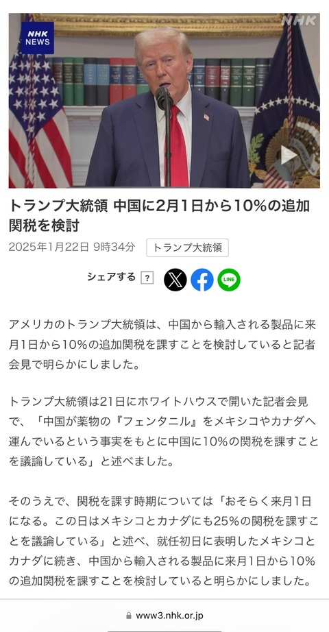 【悲報】トランプ大統領、 中国への関税は10%ぽっち