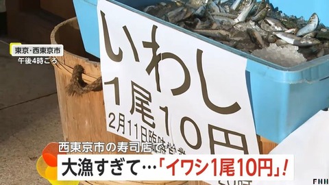 【朗報】イワシさん大漁すぎて、『イワシ1尾10円』の大セールが行われる!