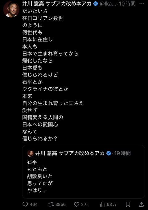 井川意高さん、遂にキレた!「国籍を変える人間を信用するのは無理!ウクライナのやつとかさぁ」