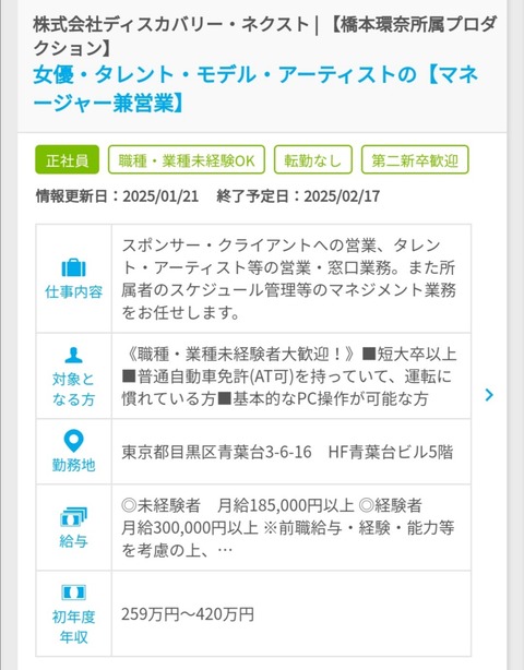 【朗報】橋本環奈さんの所属事務所がマネージャーを募集(月給18万5000円以上)