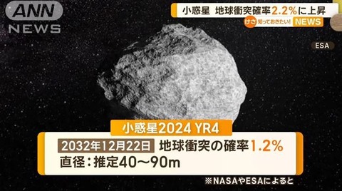 【悲報】例の隕石 、地球大衝突の確率がまた上がってしまうWWWWWWWWWWWW