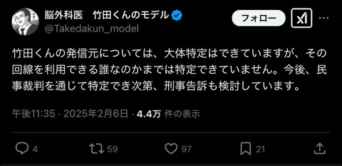 【悲報】漫画「脳外科医竹田くん」の作者、2023年10月に開示請求され特定されていたwwwwww