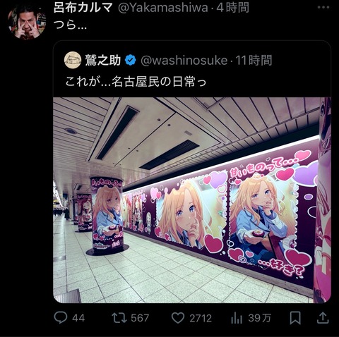 【悲報】呂布カルマさん、駅のアニメ絵広告に絡むことを持ちネタにし始める