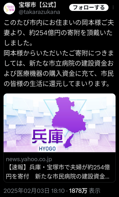 【上級国民】宝塚市、キーエンス創業メンバーからの超高額254億円寄付に担当者ビビる