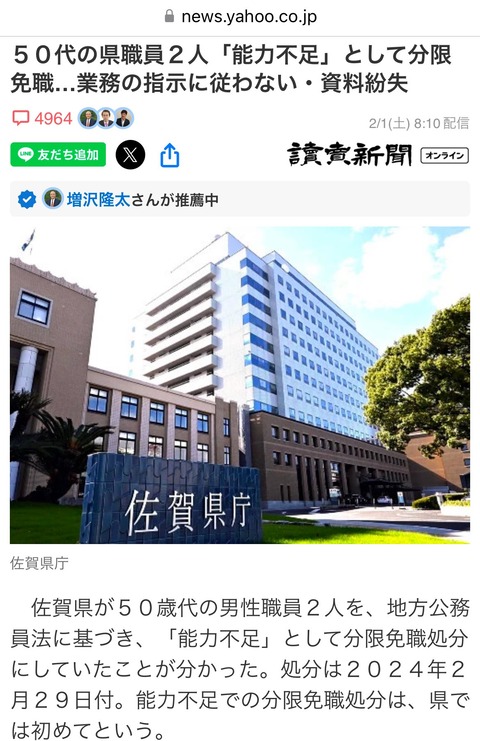 【悲報】佐賀県の公務員さん、無能すぎて県内初の分限免職処分(クビ)になってしまうwwwwwww