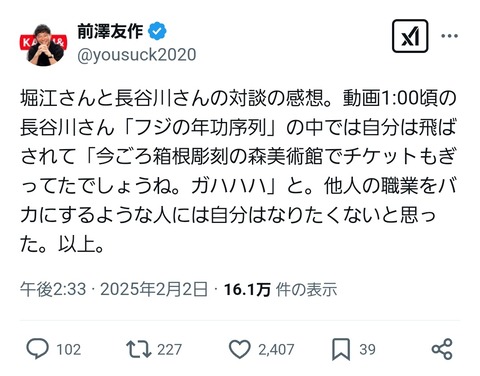 【悲報】前澤社長が元フジテレビアナの長谷川豊にブチ切れ「他人の職業をバカにするような人間になりたくない」