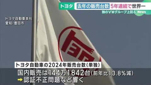 トヨタ、5年連続販売世界一 1000万台超でVWに大差