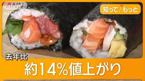 【悲報】恵方巻、値上げへ…「コメ、具材、海苔、全ての値段が上がってるので仕方ない…」