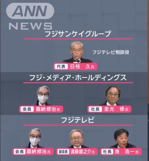 フジテレビ本日16時~の会見に出席するメンツwwww