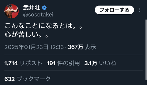 【悲報】武井壮さん、大恩人の中居正広引退報道でXで言い訳してしまう