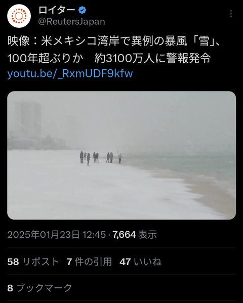 【速報】アメリカ湾で100年ぶりの大雪www